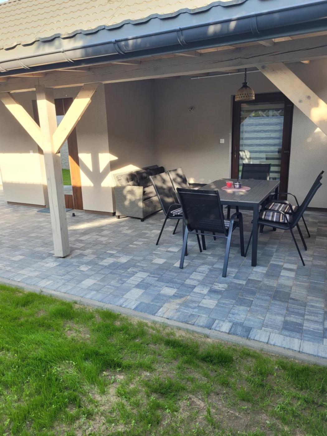 Dom z 3 sypialniami. The holiday homes kitchenette, which has kitchenware, is available for cooking and storing food. The holiday home features air conditioning, a washing machine, a terrace with garden views as well as a shared bathroom boasting a shower. The unit has 6 beds. Dom wakacyjny - 8 osobowy. Powierzchnia pokoju ok.: 70 mkw.
