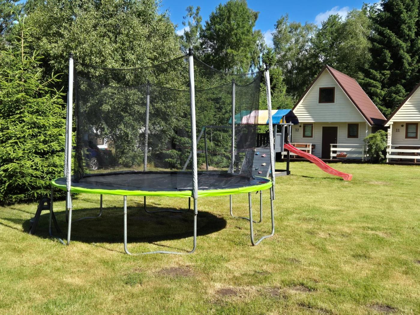 Domek z 1 sypialnią. Featuring a private entrance, this chalet is comprised of 1 living room, 1 separate bedroom and 1 bathroom with a shower. Guests will find a stovetop, a refrigerator, kitchenware and an electric kettle in the well-fitted kitchenette. The chalet also has a barbecue. Boasting a terrace with garden views, this chalet also offers a seating area and a flat-screen TV. The unit offers 2 beds. Domek - 3 osobowy. Powierzchnia pokoju ok.: 25 mkw.