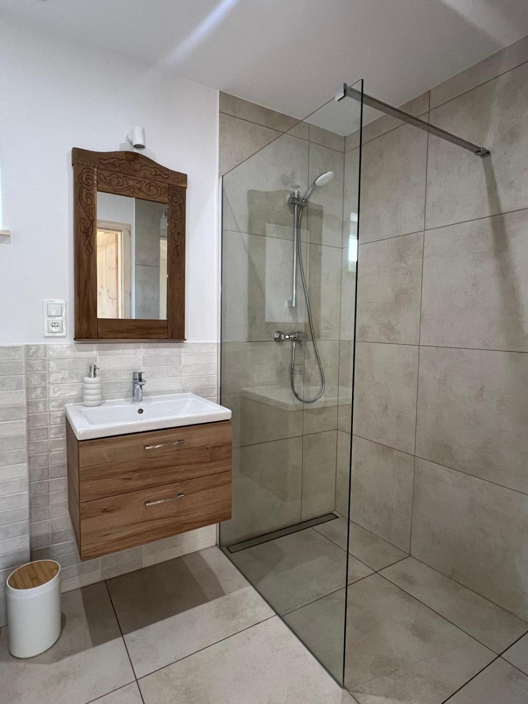 Dom z 2 sypialniami. Featuring a private entrance, this holiday home comprises 1 living room, 2 separate bedrooms and 1 bathroom with a walk-in shower. Guests will find a stovetop, a refrigerator, a dishwasher and kitchenware in the well-equipped kitchen. The holiday home also provides guests with a barbecue. Boasting a terrace with garden views, this holiday home also provides a tea and coffee maker and a flat-screen TV. The unit offers 4 beds. Dom wakacyjny - 6 osobowy. Powierzchnia pokoju ok.: 60 mkw.